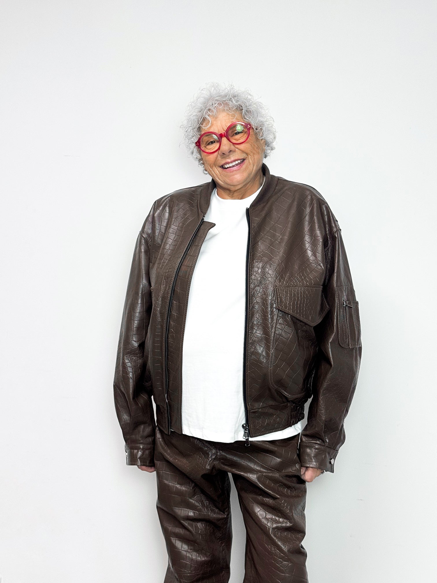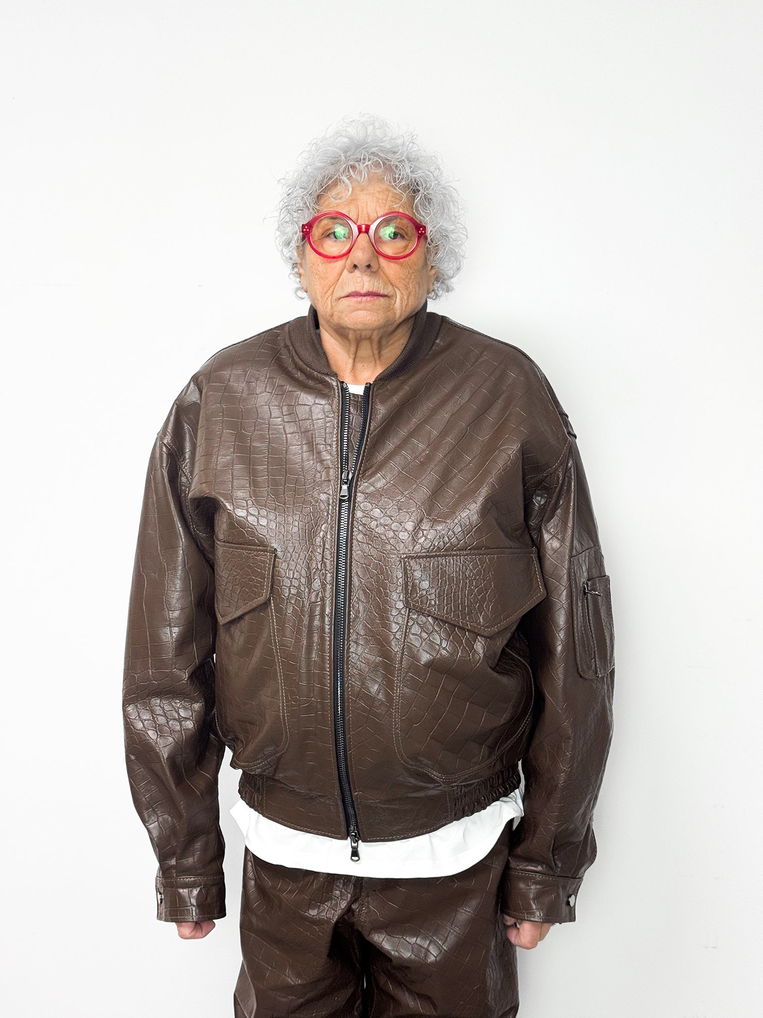 Bomber in pelle goffrata effetto coccodrillo